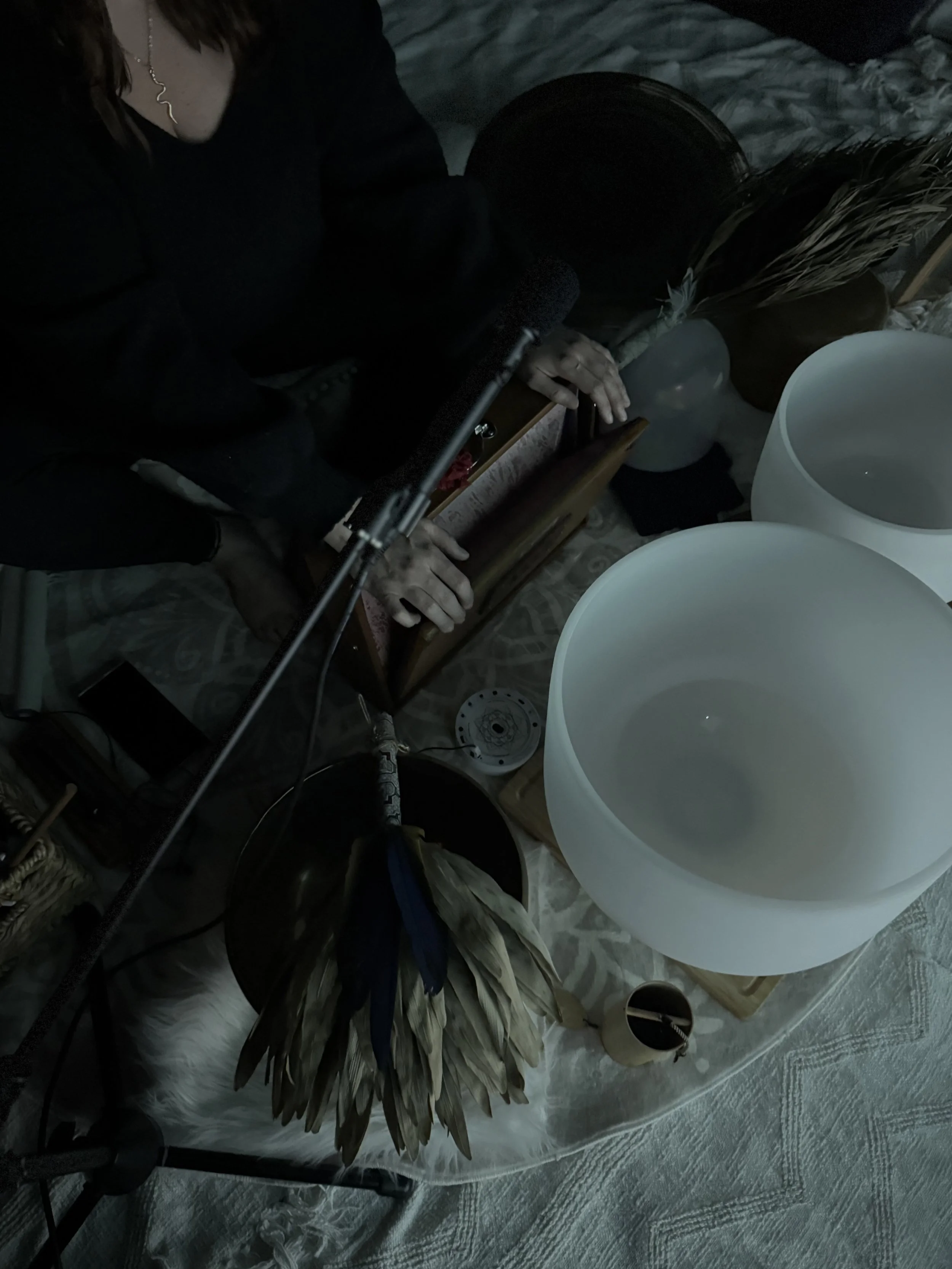 Each gathering closes with a guided sound meditation to support rest, integration, and nervous system settling. Sounding and intuitive singing are gently woven with crystal bowls, chimes, and other meditative instruments to support the body in processing and remembering what has been practiced, explored, and experienced during the gathering. Guided meditation and simple breathwork are included.